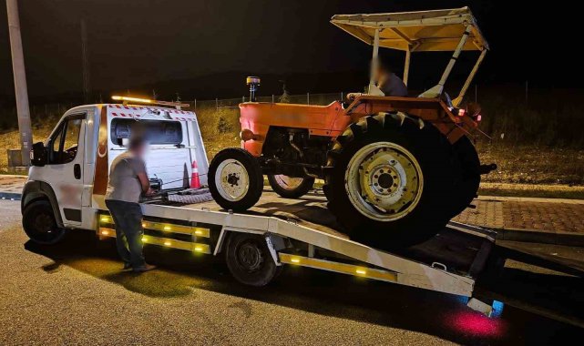 Otoyolda seyri yasak olan traktör, çekici vasıtasıyla bulunduğu yerden kaldırılarak otoparka çekildi ve trafikten men edildi.