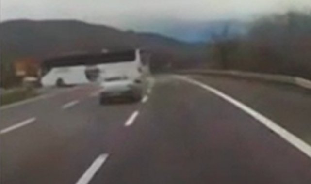 Otoyolun Gümüşova rampaları mevkiinde H.Ö. idaresindeki bir turizm firmasına ait yolcu otobüsünün, refüjde bulunan ve acil durumlar için ayrılan boşluktan karşı şeride geçmeye çalıştığı anlar, bir başka aracın kamerasına yansıdı. Görüntüleri inceleyen Otoyol Jandarma Komutanlığı ekipleri, aracı durdurarak işlem yaptı.