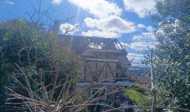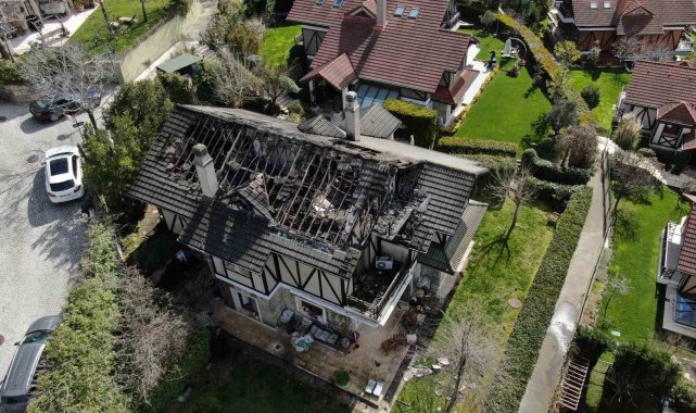 Öte yandan, ünlü oyuncunun çıkan yangında küle dönen çatı katı, havadan görüntülendi.