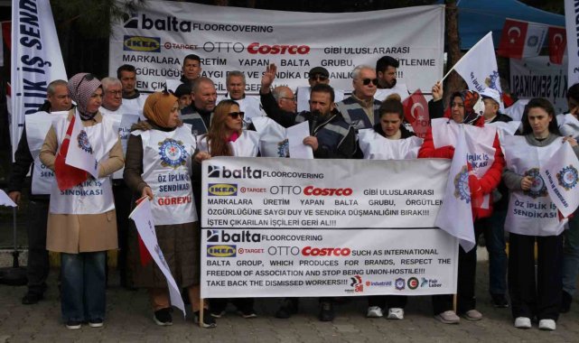 Uşak'ta faaliyet gösteren Balta Floorcovering Yer Döşemeleri A.Ş.'de çalışan işçiler, bir süre önce işçi sendikası Öz İplik İş'e üye oldu. İşverenlikçe çeşitli sebepler bahane gösterilerek, sendikaya üye olan 4 işçi işten çıkarıldı. Yaşananların ardından Öz İplik İş Genel Merkezi, Uşak'ta işten çıkartılan 4 üyesi için fabrika binası önünde eylem yaptı.