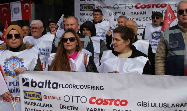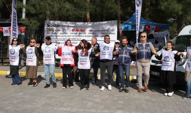 Öz İplik İş Sendikası, Uşak'ta sendikaya üye oldukları için Balta Floorcovering tarafından işten çıkartılan 4 üyesi için fabrika önünde eylem yaptı.