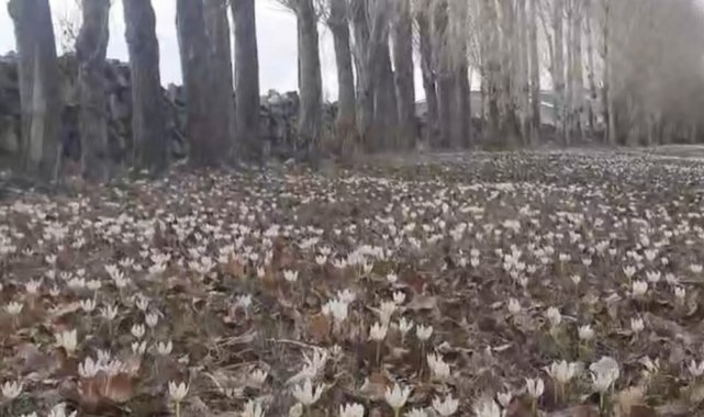 Van'ın Özalp ilçesinde havaların ısınmasıyla birlikte baharın habercisi olan çiğdemler çiçek açtı.