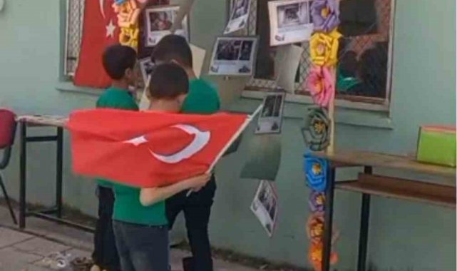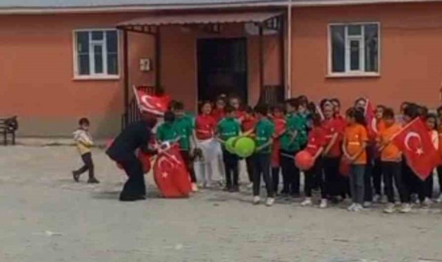 Van'ın Özalp ilçesindeki Sarıköy İlkokulu öğrencileri, 23 Nisan etkinlikleri kapsamında Filistinli çocukları unutmayarak anlamlı bir etkinliğe imza attı.