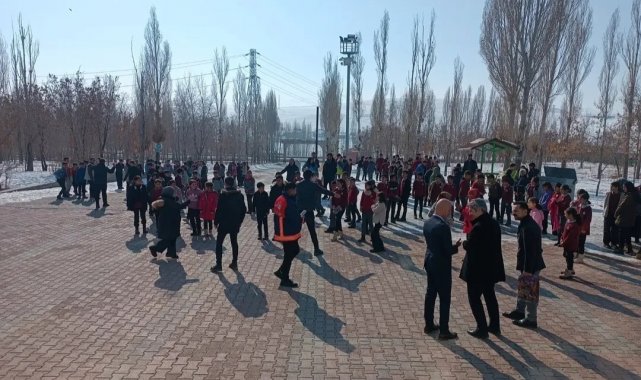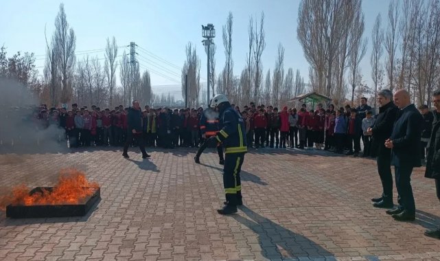 Van'ın Özalp Yatılı Bölge Ortaokulunda yangın tatbikatı yapıldı.