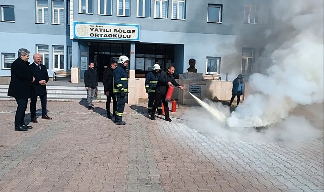 Özalp Yatılı Bölge Ortaokulu öğretmen ve öğrencilerine yönelik yapılan bilgilendirmenin ardından öğrencilere uygulamalı olarak yangının nasıl söndürüleceği gösterildi. Tatbikata katılan Özalp İlçe Milli Eğitim Müdürü Zeki Gülmez, tatbikatlarla muhtemel felaketlere karşı hazırlıklı olmanın önemini vurgulayarak; itfaiye ekibine, okul idarecilerine ve öğretmenlere teşekkür etti.