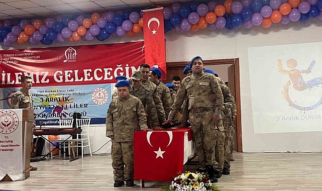Siirt'te 3 Aralık Dünya Engelliler Günü'nde özel bireyler askeri kamuflaj giyerek yemin törenine katıldı.