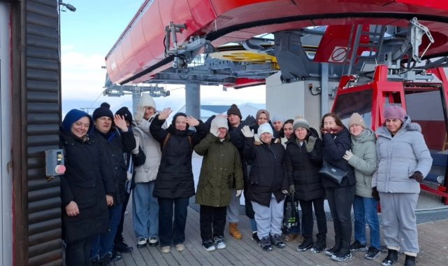 Özel bireyler gondollarla Ergan Dağı Kayak Merkezine çıktılar ardından kayak merkezini gezerek hatıra fotoğrafı çekildiler.
