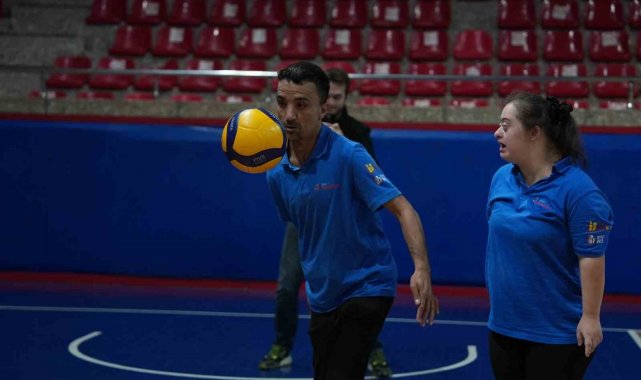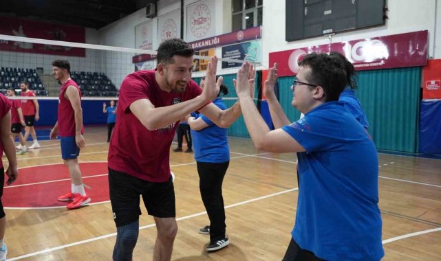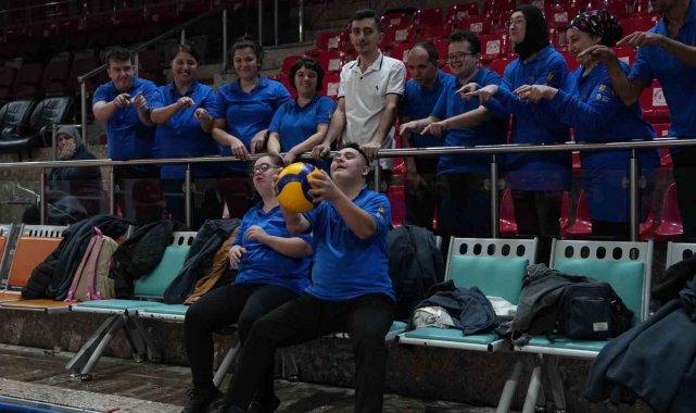 İlk olarak antrenmanı tribünden izleyen özel bireyler, Takım Kaptanı Alperen Aydın'ın voleybol topunu tribüne göndermesinin ardından parkeye inerek antrenmana katıldı.