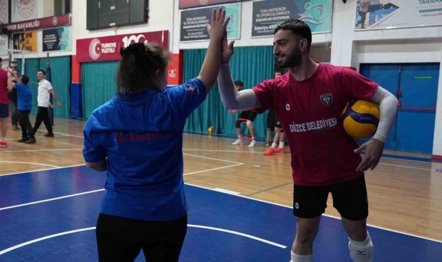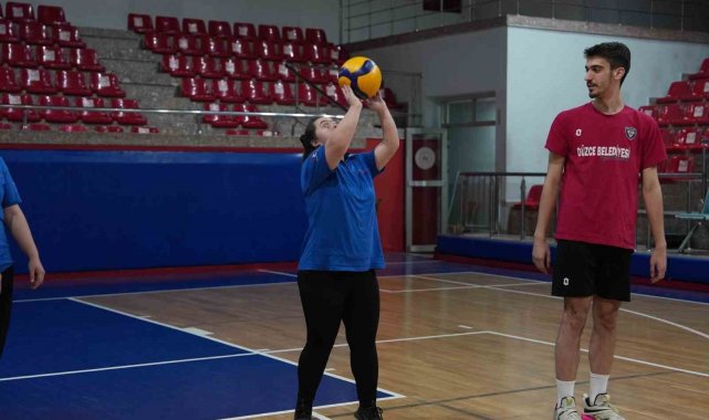 DÜZCE(İHA) – Düzce Belediyesi Kusursuz Kafe'nin özel çalışanları, Düzce Belediyesi Spor Akademisi Voleybol Takımı'nın antrenmanına katılarak hem sporculara moral verdi hem de keyifli anlar yaşadı. Özel bireyler, Konuralp Beyleri ile yaptıkları maçta doyasıya eğlendi.