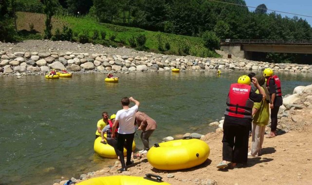 Trabzon'un Hayrat ilçesinde bugün down sendromlu ve zihinsel engelli çocuklara yönelik bir rafting etkinliği düzenlendi.