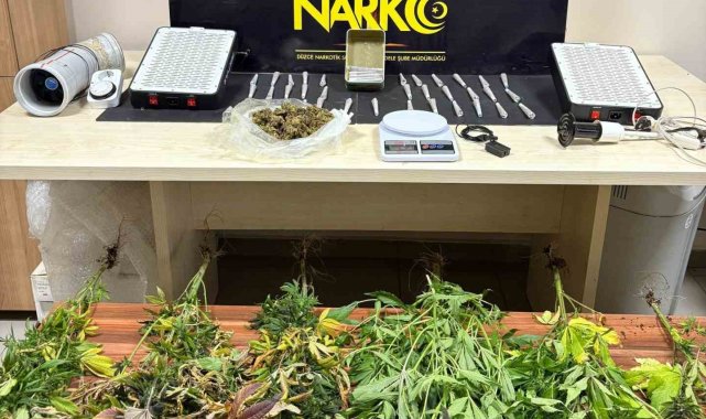 Düzce'de Emniyet Müdürlüğü Narkotik Suçlarla Mücadele Şube Müdürlüğü ekipleri tarafından yapılan baskında evin içinde uyuşturucu yetiştirildiği ortaya çıktı. Evde esrar maddesi ve kenevir bitkisi ele geçirildi.