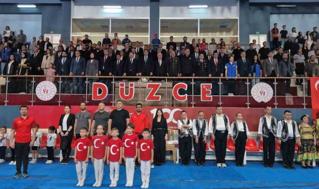 Anıtpark'ta yapılan gösterilerin ardından Bahçeşehir Spor Salonunda devam etti. Burada Saygı duruşu ve istiklal marşının okunmasının ardından Vali Selçuk Aslan'ın Düzcelilerin ve gençlerin bayramını kutlamasıyla başladı. Gençlik ve Spor İl Müdürlüğü'ne bağlı sporcular gösteriler yaptı.