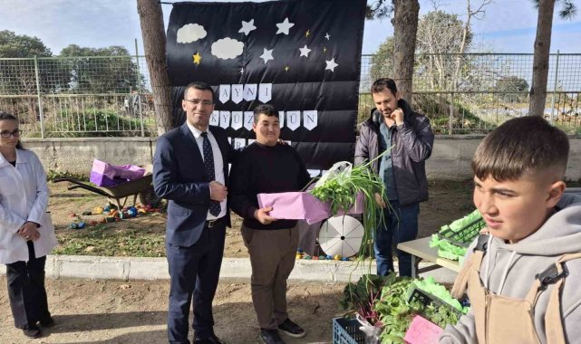 Manisa'nın Sarıgöl ilçesinde Engelliler Günü kapsamında düzenlenen etkinlikte protokol üyeleri, özel eğitim öğrencileriyle birlikte yetiştirilen ürünleri hasat edip, birlikte pasta kesti.