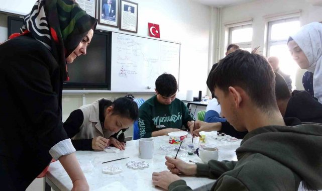 Kütahya Bahattin Çini Özel Eğitim Meslek Okulu'nda özel öğrenciler için anlamlı bir çini boyama etkinliği düzenlendi. Etkinlikte hafif zihinsel engelli öğrenciler, hem sanatsal becerilerini geliştirme fırsatı buldu hem de keyifli anlar yaşadı.
