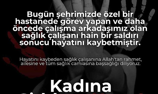 Özel Megapoint Hastanesi, sağlık çalışanı cinayetiyle ilgili yapılan yazılı açıklamada, "Şehrimizde hizmet veren özel bir sağlık kuruluşunda görev yapan ve daha öncede çalışma arkadaşımız olan sağlık çalışanının, uğradığı silahlı saldırı sonucu hayatını kaybetmesi bizi derinden üzmüştür. Hayatını kaybeden sağlık çalışanımıza Allah'tan rahmet, kederli ailesine, yakınlarına ve tüm sağlık camiasına başsağlığı ve sabırlar diliyoruz. Bilinmelidir ki kadına yönelik her türlü şiddet anneye yöneliktir. Mesleği gereği bizim için ayrı bir öneme sahip olan sağlık çalışanının bu şekilde acımasızca ve canice saldırıya maruz kalarak hayatını kaybetmesi biz sağlık camiasını derinden etkilemiş olup derin bir yasa boğmuştur. İşi sadece insanlara sağlık alanında hizmet vermek olan sağlık çalışanının bu denli hayatını kaybetmesi bizleri derinden etkilemiştir. Bu olay, hem kadına yönelik şiddet, hem de sağlık camiamıza yönelik bir tehdit ve toplum vicdanını yaralayan korkunç bir eylemdir. Sağlık camiamızın başı sağ olsun" denildi.