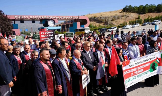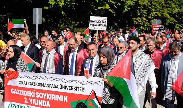 Tokat Gaziosmanpaşa Üniversitesi öğrencileri ve akademisyenleri, Gazze'deki soykırımın 2'nci yılı dolayısıyla "Özgürlüğe yürüyoruz" sloganıyla düzenlenen yürüyüşte barış, adalet ve özgürlük çağrısında bulundu.