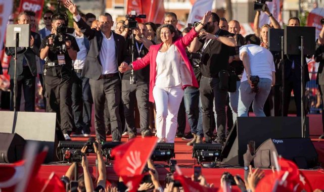 CHP Genel Başkanı Özgür Özel'in çağrısıyla her hafta bir şehirde düzenlenmesi planlanan "demokrasi mitingleri" kapsamında "Millet İradesine Sahip Çıkıyor" sloganıyla Gündoğdu Meydanı'nda miting düzenlendi. Mitinge katılmak için vatandaşlar Kordon'a akın etti. Miting alanındaki giriş noktalarında emniyet görevlilerinin sıkı arama yaptığı görüldü. Mitingde CHP Genel Başkanı Özgür Özel, partinin genel başkan yardımcıları, milletvekilleri, il ve ilçe başkanları, belediye başkanları, partililer, çok sayıda vatandaş yer alırken, Ekrem İmamoğlu'nun eşi Dilek İmamoğlu da katıldı. Mitingde DEVA Partisi'nden İzmir Milletvekili seçilen ve geçtiğimiz ay partisinden istifa ederek Cumhuriyet Halk Partisi'ne (CHP) katılan Seda Kaya Ösen'e rozeti Genel Başkan Özgür Özel tarafından takıldı.