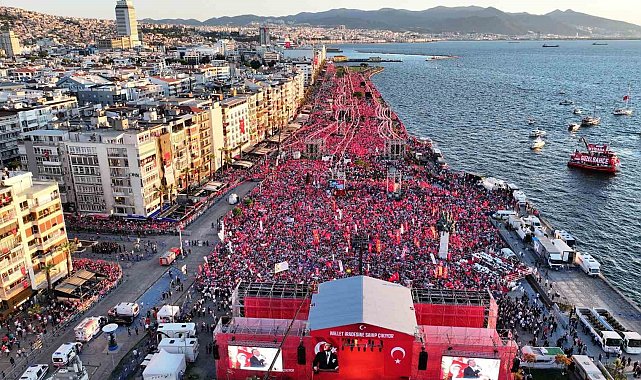 İzmir'de CHP Genel Başkanı Özgür Özel'in katılımıyla 'Millet İradesine Sahip Çıkıyor' mitingi düzenlendi. Özel'in 2 milyon kişinin katıldığını söylediği mitinge, emniyet kaynaklarından alınan rakama göre 70 bin kişinin katıldığı öğrenildi.