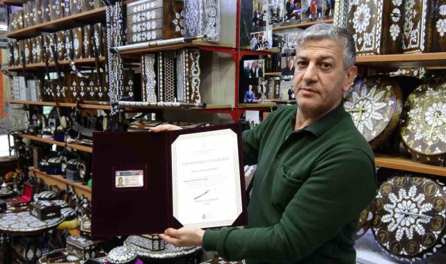Gaziantepli sedef kakma ustası Mehmet Bülent Fıstıkçı, 'Yaşayan İnsan Hazineleri Ödülü'nü almanın gururunu yaşıyor.