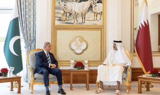 Pakistan Başbakanı Şahbaz Şerif, Katar Emiri Şeyh Tamim bin Hamad Al Thani ile bölgesel durumu görüştü.