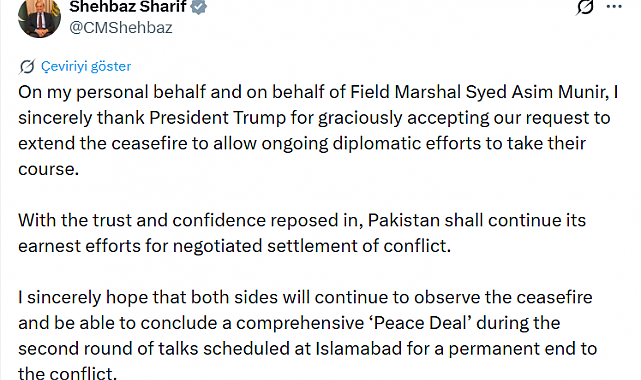 Pakistan Başbakanı Şahbaz Şerif, diplomatik çabaların devamına imkan tanımak için İran'la varılan 2 haftalık ateşkesi uzatma taleplerini kabul eden ABD Başkanı Donald Trump'a teşekkür etti.