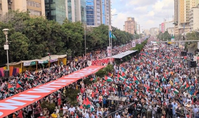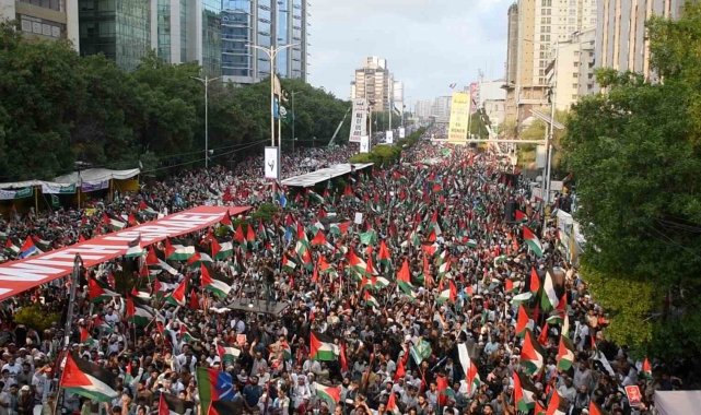 Pakistan'ın Karaçi kentinde binlerce kişi Gazze Şeridi için sokağa indi. Cemaat-i İslami Partisi liderliğinde düzenlenen gösteride, ellerinde Filistin bayrakları taşıyan protestocular, Gazze Şeridi ile dayanışma içinde olduklarını ifade etti.