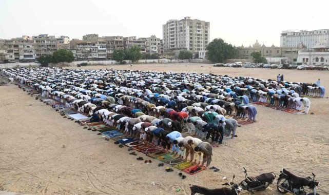 Güney Asya ülkesi Pakistan'da Kurban Bayramı bugün başladı. Müslümanlar, bayram namazını kılmak üzere camilere ve açık alanlara akın etti. Sind eyaletine bağlı Karaçi kentinde Müslümanlar, Bilal Camii'nin dolup taşması nedeniyle bayram namazını dışarıda kıldı. Müslüman halk, namazın ardından kurbanlarını keserek dini vecibelerini yerine getirdi.