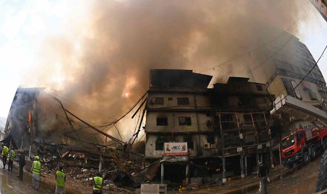 Pakistan'da cumartesi akşam saatlerinde çıkan yangın, bir çiçekçide başlamış ve 18 saatten fazla süredir söndürülememişti. Yaklaşık bin 200 mağazanın bulunduğu AVM'nin bir kısmı yangın nedeniyle çökmüş, zemin kattaki tüm dükkan ve depolar alevlere teslim olmuştu.