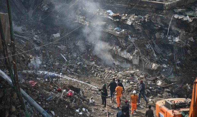 AVM'nin enkazında arama çalışmaları sürüyor.