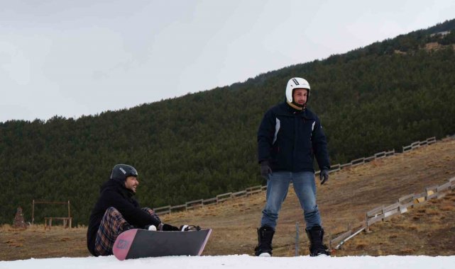 Erzurum Palandöken Kayak Merkezi'nde kayak keyfi başladı. Merkezde kar az olsa da suni karlama ile pistler sezona hazırlanıyor.