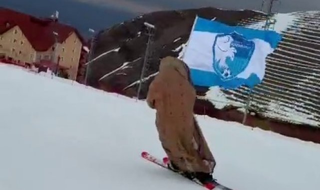 Son olarak Erzurumspor bayrağı ve ehramlı "Naciye Bibi" tiplemesiyle kayak pistinde görünen Abdullah Hanlı, kayakseverlerin ve sosyal medya kullanıcılarının beğenisini aldı.