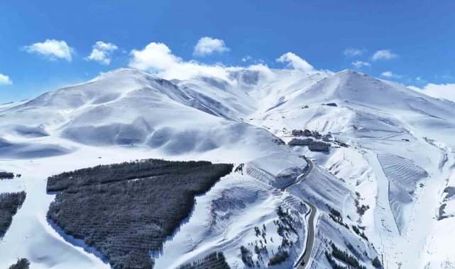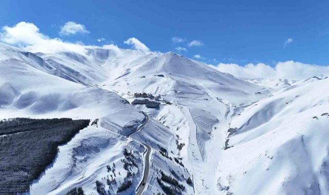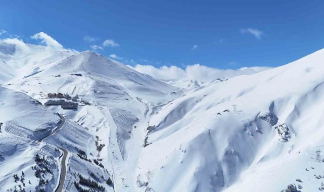 Erzurum'da iki gündür etkili olan kar yağışı Palandöken Kayak Merkezi'ni yeniden beyaz örtüyle kapladı.
