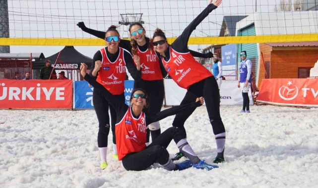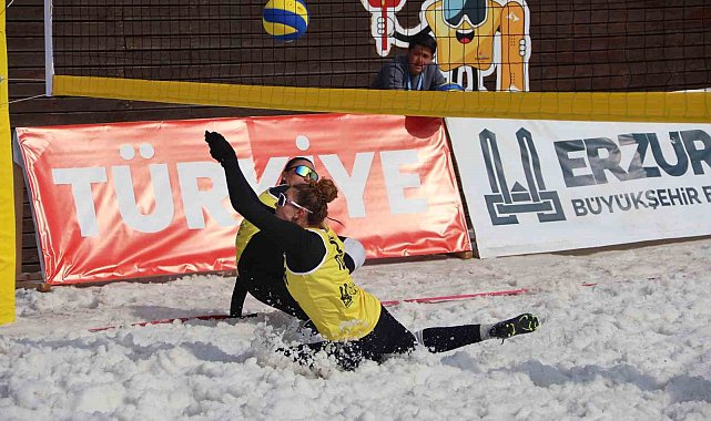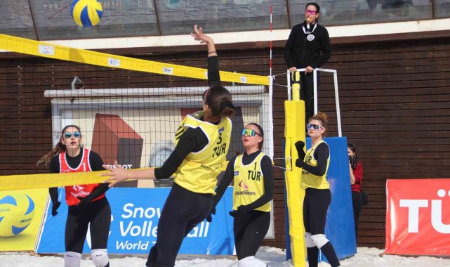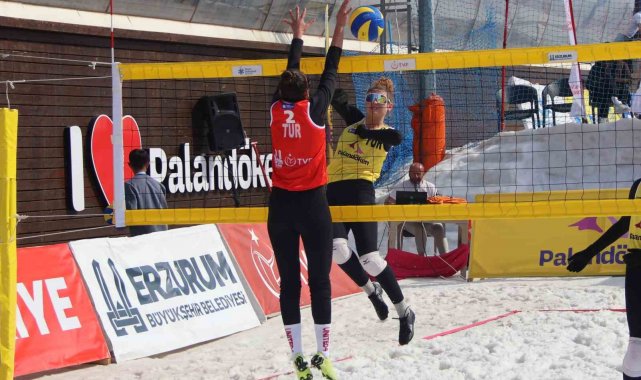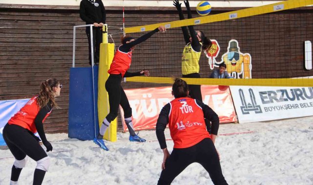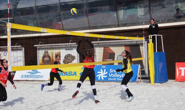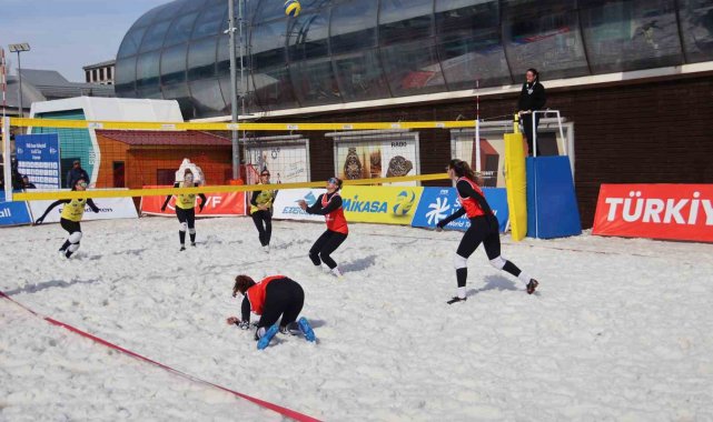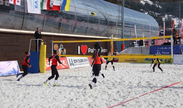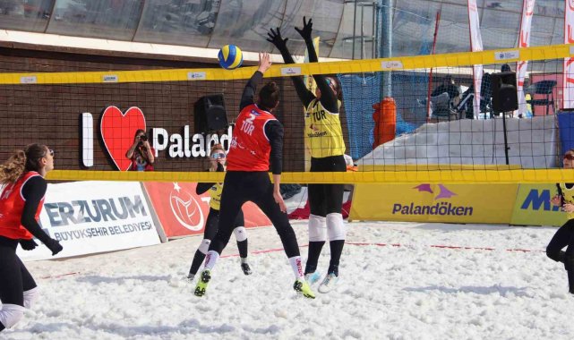 Palandöken Kayak Merkezi'nde kar voleybolu coşkusu yaşandı.