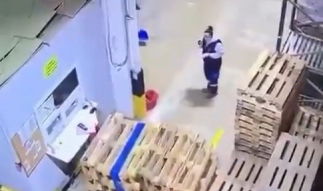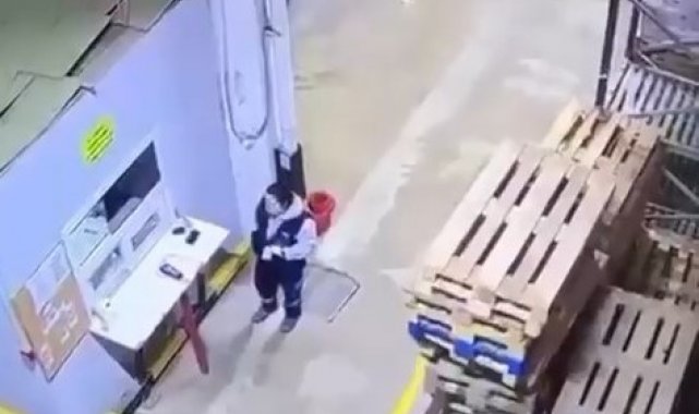 Bursa'da forklift tarafından üst üste dengesiz yerleştirilen paletler, devrildi. O esnada paletlerin yanında olan bir kadın çalışan, refleksi sayesinde paletlerin altında kalmaktan kurtuldu.