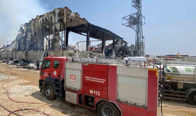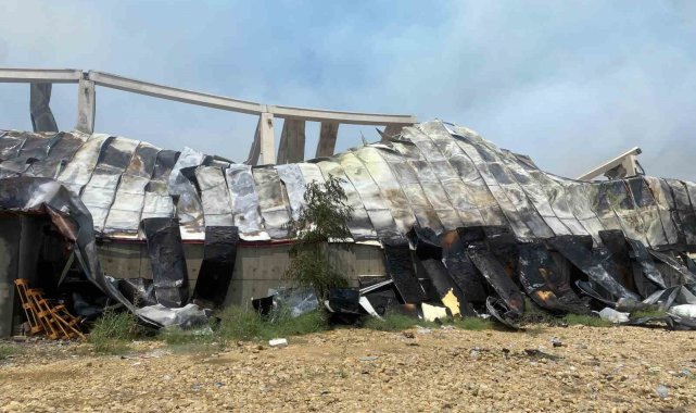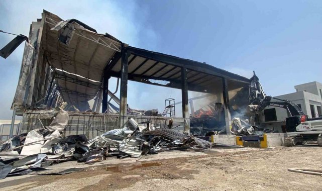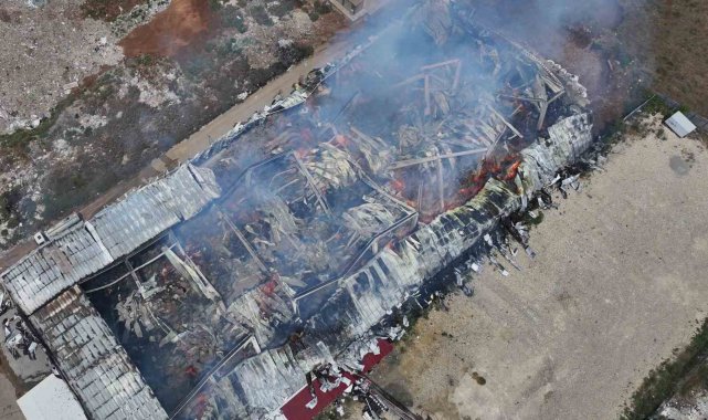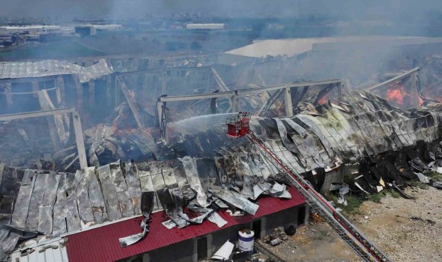 Yangının meydana geldiği depodaki son durum ise dron ile havadan görüntülendi.