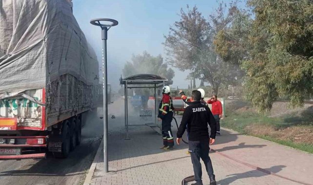 Pamuk yüklü tırda çıkan yangın büyümeden söndürüldü