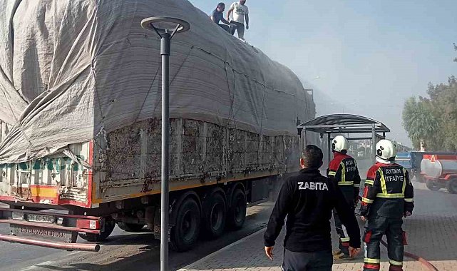 Aydın'ın Germencik ilçesinde pamuk yüklü tırda çıkan yangın, itfaiyenin hızlı müdahalesiyle büyümeden söndürüldü.