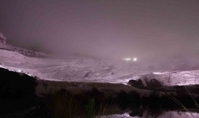 Denizli'de gün boyunca etkili olan şiddetli yağmurun ardından akşam saatlerinde kent genelinde yoğun sis oluştu. UNESCO Dünya Mirası Listesi'nde yer alan ve "Beyaz cennet" olarak bilinen Pamukkale travertenleri de sisle birlikte adeta farklı bir atmosfere büründü. Travertenlerin bembeyaz dokusuna eşlik eden sis tabakası, bölgede kartpostallık manzaralar oluşturdu.