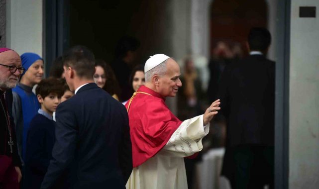 İlk resmi ziyaretini Türkiye'ye yapan Papa 14. Leo, İstanbul temasları kapsamında din adamlarıyla buluşmak üzere Şişli Harbiye'deki Kutsal Ruh Katedrali'ne geldi.