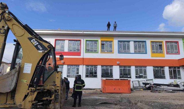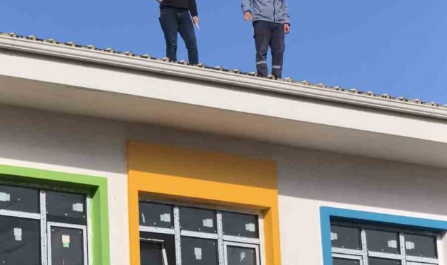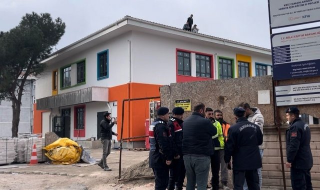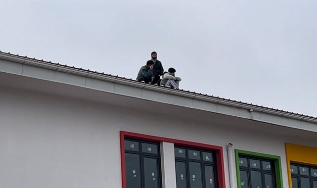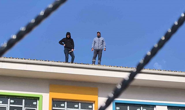 Paralarını alamayan işçiler anaokulunun çatısına çıktı