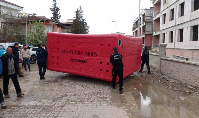 Malatya'da çalıştığı bir inşaat firmasında alacağını tahsil edemeyen işçi inşaatın halindeki binaya çıkarak eylem yaptı.
