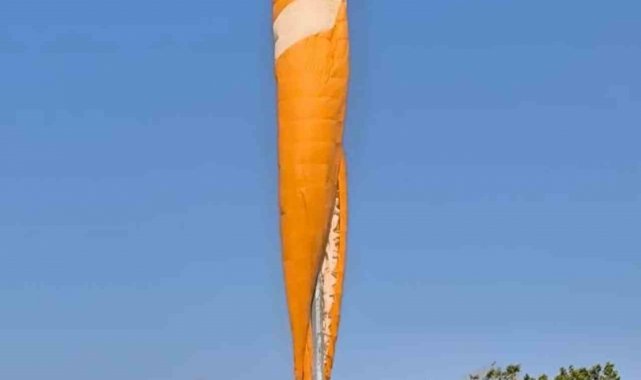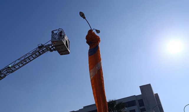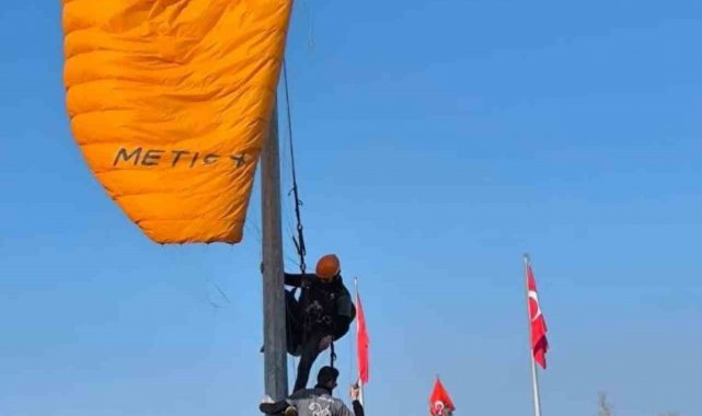 Paraşütçünün gökyüzü sefası aydınlatma direğine takıldı