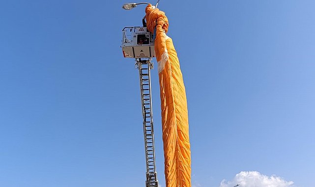 Olay, İskenderun ilçesi Atatürk Caddesi'nde yaşandı. Uçuş gerçekleştiren İ.Ö. isimli paraşütçü iniş esnasında aydınlatma direğine takıldı. İhbar üzerine bölgeye itfaiye ekibi sevk edildi. Mahsur kalan paraşütçü itfaiye ekipleri ve vatandaşların yardımıyla direkten kurtarıldı. Kontrol amaçlı hastaneye kaldırılan paraşütçünün sağlık durumunun iyi olduğu öğrenildi.