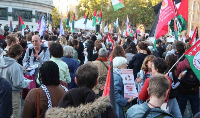 Paris'te binlerce kişi İsrail'in Gazze'ye saldırılarını protesto etti: "Katil Netanyahu, Filistin Filistinlilerindir"