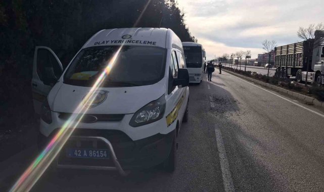 Konya'nın Ereğli ilçesinde park halindeki aracının yanında bulunduğu sırada işçi servisinin çarptığı tır sürücüsü yaralandı.