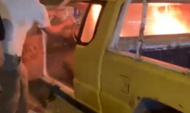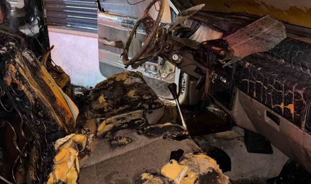 Yangın sonrası kamyonet kullanılamaz hale geldi. Yangının çıkış sebebi araştırılıyor.