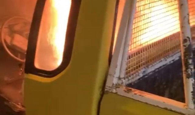 Park halindeki kamyonet alev aldı