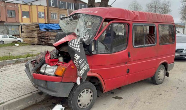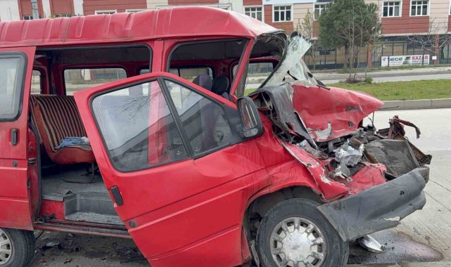 Park halindeki kamyonete çarpan minibüs kağıt gibi ezildi