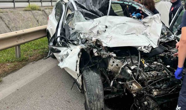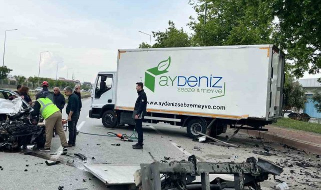 Park halindeki kamyonete çarpan otomobil hurdaya döndü, genç sürücüsü hayatını kaybetti
