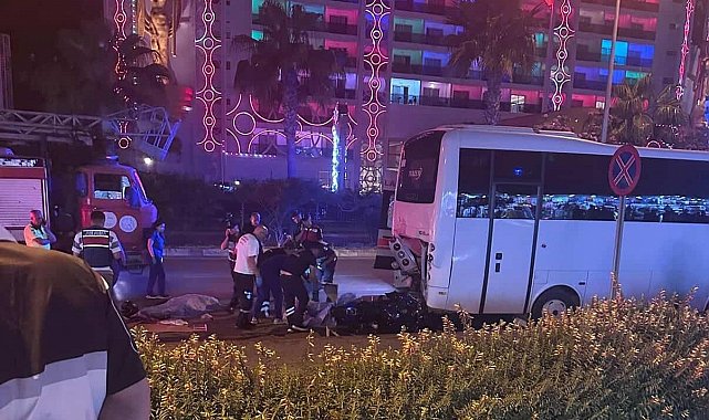 Kaza, sabah saatlerinde Alanya ilçesi Avsallar Mahallesi D-400 Karayolu'nda meydana geldi. Edinilen bilgilere göre, Alanya istikametinden Manavgat yönüne seyir halinde olan Kazım Alış (24) idaresindeki 07 BPP 908 plakalı motosiklet, yol kenarında park halinde bulunan 51 S 0241 plakalı midibüse çarptı. Çarpışmanın şiddetiyle Kazım Alış ve arkasında yolcu olarak bulunan Medine Badirov (25) motosikletten savruldu. Kazayı görenlerin 112 Acil Çağrı Merkezi'ne ihbarda bulunması üzerine bölgeye polis ve sağlık ekipleri sevk edildi. Olay yerine gelen sağlık ekipleri, iki gencin de olay yerinde yaşamını yitirdiğini belirledi. Kazanın meydana geldiği sırada midibüs içinde yolcu bulunmadığı, araçta herhangi bir yaralanma ya da can kaybı yaşanmadığı öğrenildi. Kazayla ilgili soruşturma başlatıldı.